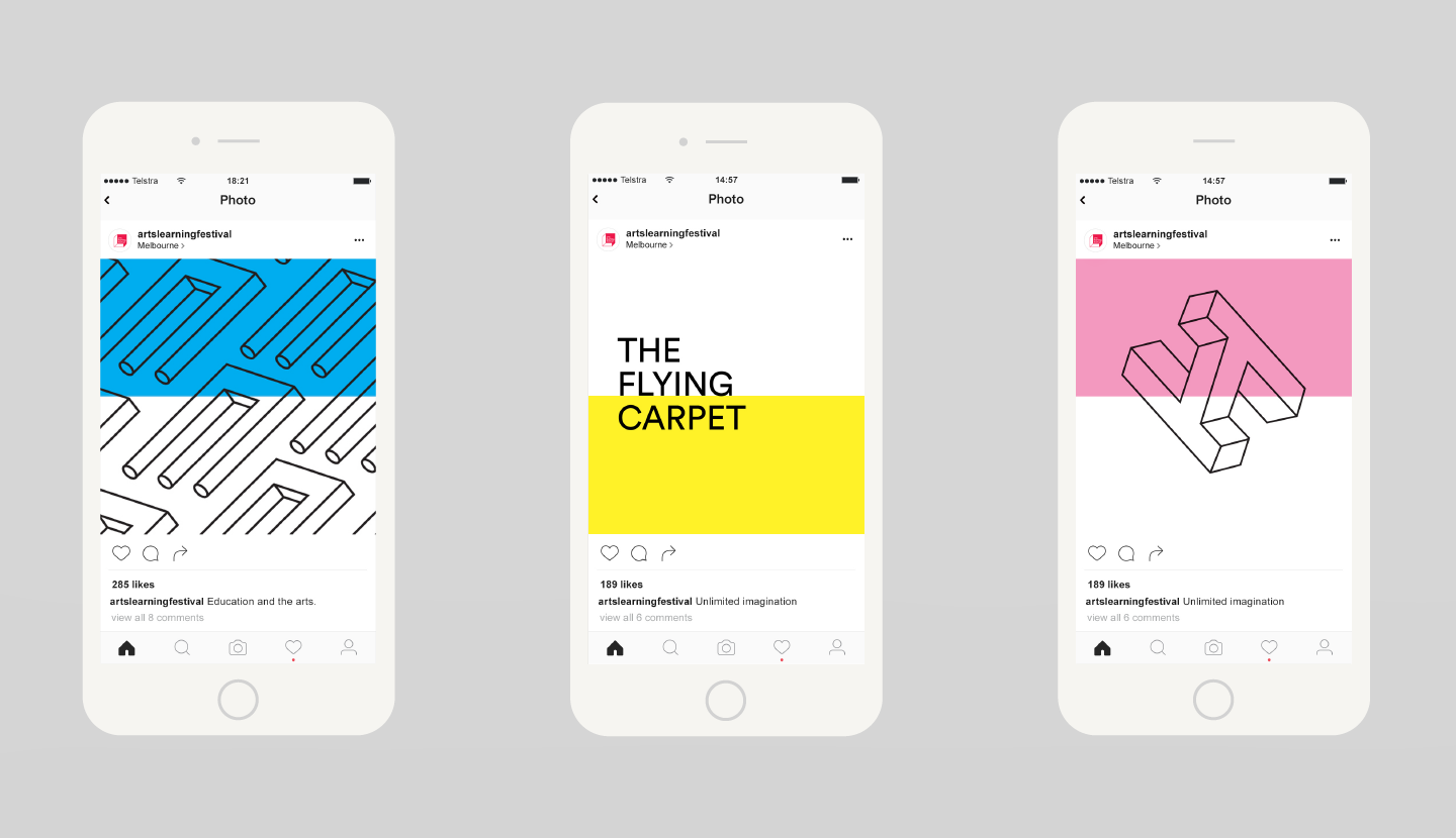 We built the festival a new identity from the core idea of ‘unlimited imagination’. The logo and visual language both feature bold colour and line-drawn shapes which, upon closer inspection, are optically impossible.